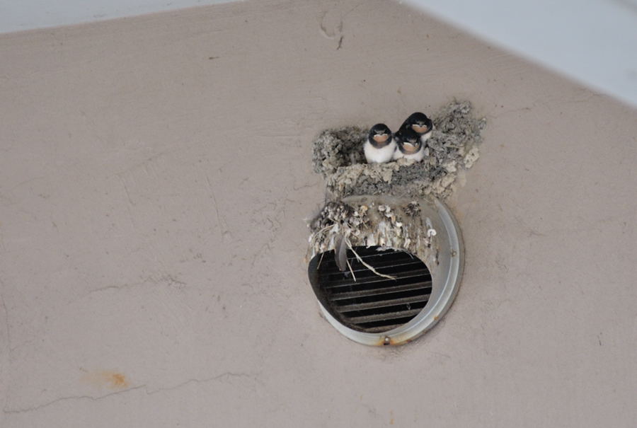 今年のツバメは、繁殖力が強くて、同じ巣に2回出産したようです・・・それとも、違う夫婦かな・・・前回はカラスの攻撃に遭い、雛がかなりヤラれてしまいましたが、今回は、雛は転落事故死が1件だけだったようです。インターロッキングが雛のクソだらけです♪ 毎日デッキブラシでこすっても、こいつら、容赦なく、ハードな爆撃をかますので、清掃代金を請求したいようです!