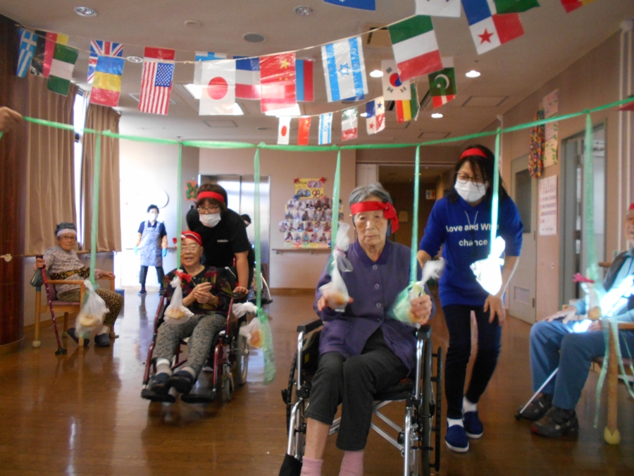 以上、特養ミニ運動会の様子でした。いかがでしたでしょうか?利用者の皆さん、職員一同大いに楽しめた運動会でした(^^♪