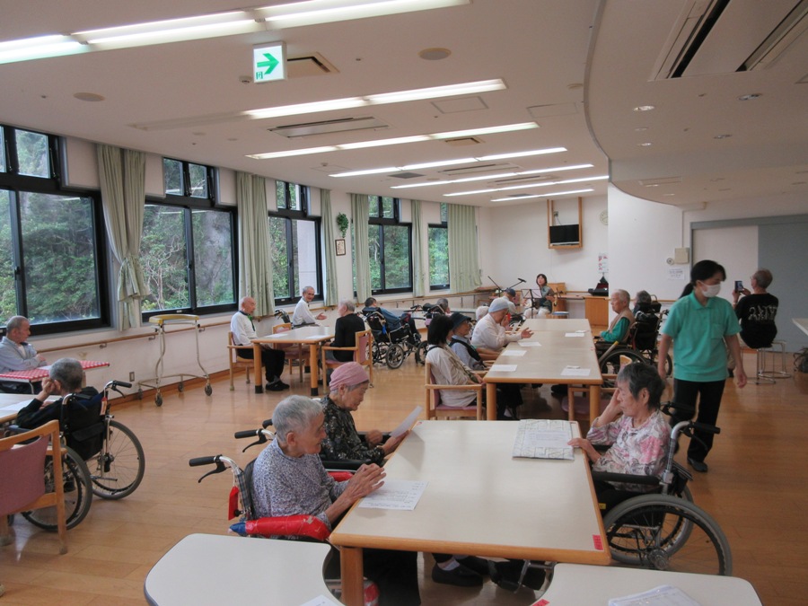歌詞カードを見ながら皆さんで歌います(^^)v