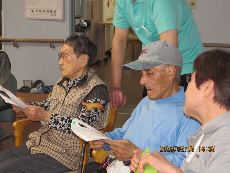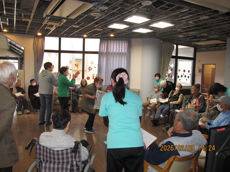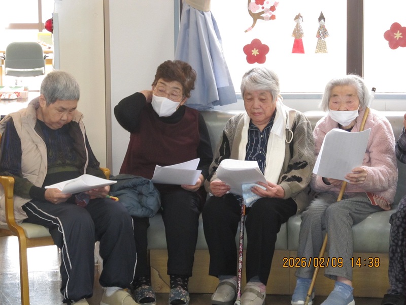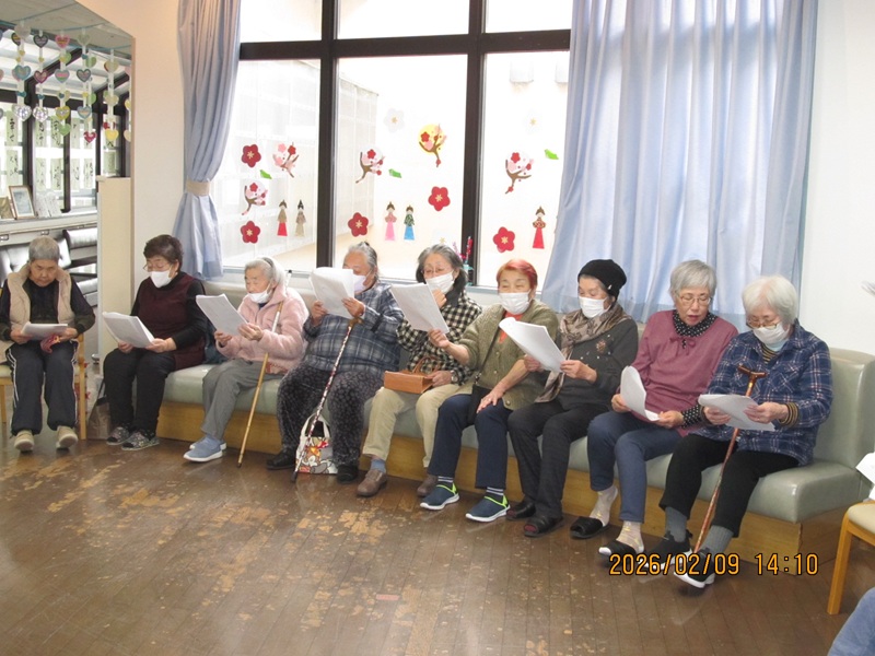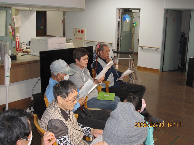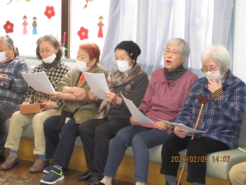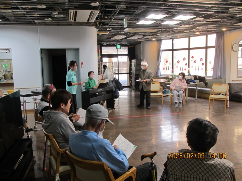 ※2月9日には「歌う会」のボランティア方々が来所され、利用者さんと一緒にハーモニカやピアノ演奏しながら歌ってもらいました※